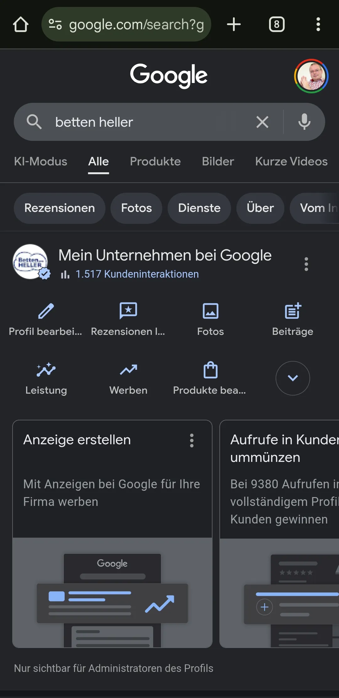 Stellen Sie fest, dass Ihr Betrieb einen Unternehmenseintrag hat, können Sie die Pflege dieses Eintrags übernehmen. Für die Pflege und Einrichtung empfehle ich Ihnen meine Dienste in Anspruch zu nehmen, da das Einrichten nicht so einfach erledigt ist, wenn Sie keine Routine darin haben.
