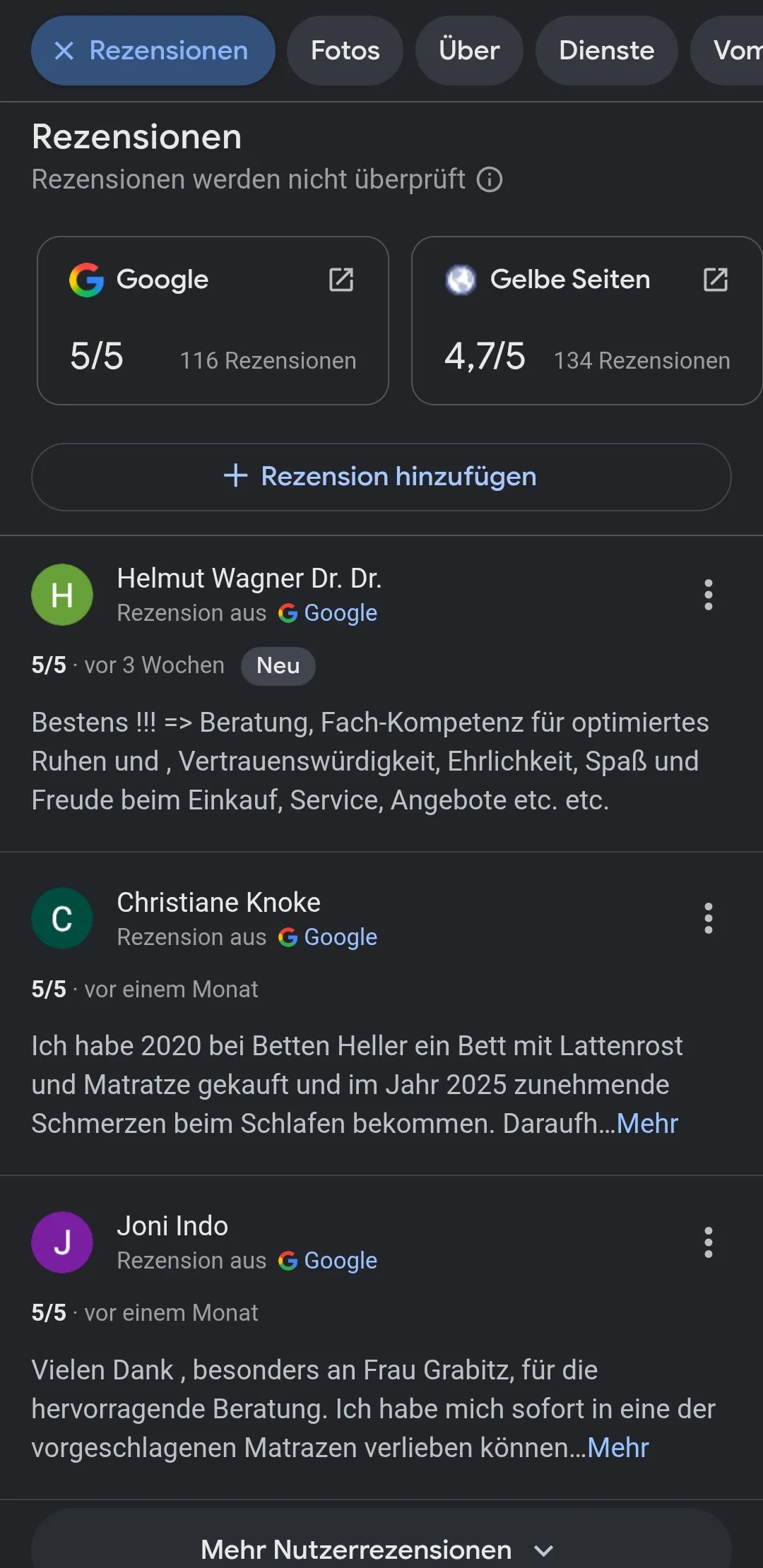 Das Keyword und der Ort (Beispiel: "Matratzen Fulda") sind das beste Anzeichen für eine Kaufabsicht eines Produktes oder einer Dienstleistung in Ihrer Nähe.