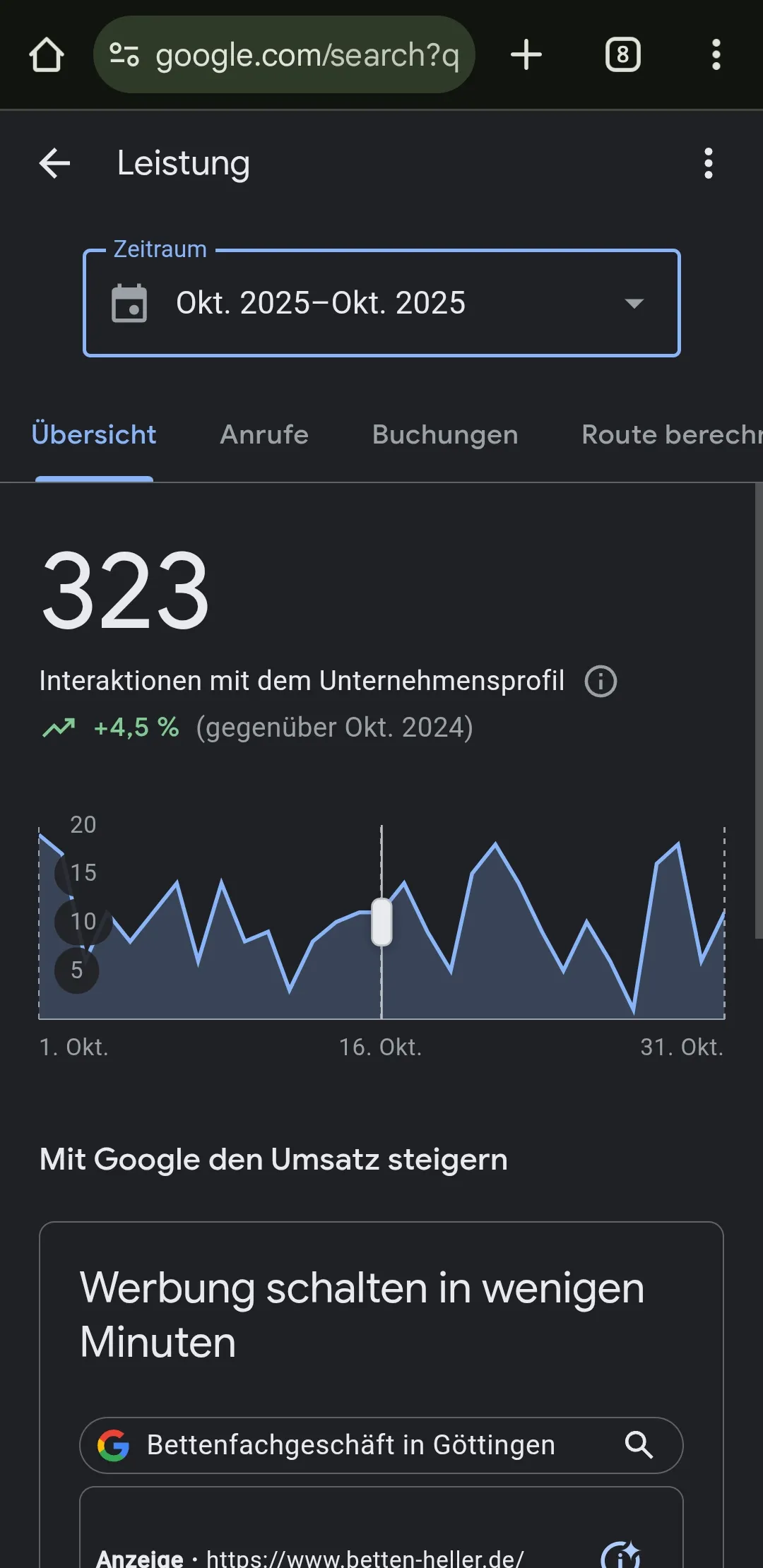 Statistiken und Beiträge des Google-Brancheneintrags